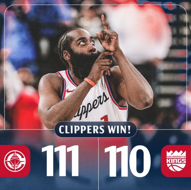 準(zhǔn)三雙+兩個(gè)關(guān)鍵拋投!快船官方贏球海報(bào)封面給到了哈登