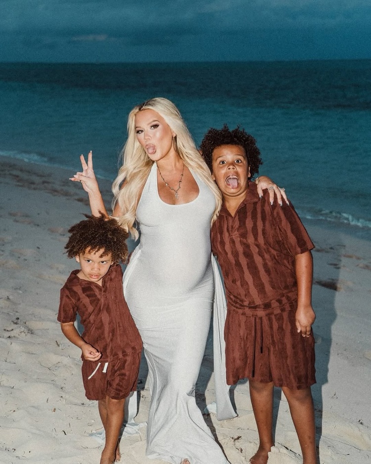 特克斯和凱科斯群島!蘭德爾妻子曬和兩個兒子的旅行照
