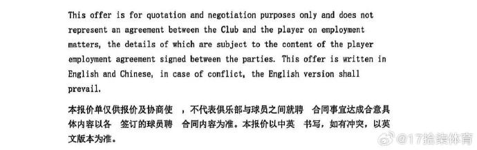 二 多家俱樂(lè)部對(duì)哈雷爾感興趣并進(jìn)行了談判,其間另一家中方經(jīng)紀(jì)公司在浙江稠州銀行俱樂(lè)部與哈雷爾的談判過(guò)程中簽訂了一份報(bào)價(jià)單,其中明確約定“該報(bào)價(jià)單僅供報(bào)價(jià)和協(xié)商使用,不代表球員與俱樂(lè)部完成聘用合同簽約?!薄@也是浙江稠州銀行俱樂(lè)部多次公告中含糊其辭提及的“簽約”。最后,在多家俱樂(lè)部中談判協(xié)商中球員哈雷爾于二月十日選擇了簽約新疆廣匯俱樂(lè)部,三方按中國(guó)籃協(xié)和CBA公司要求簽訂了標(biāo)準(zhǔn)合同并在中國(guó)籃協(xié)完成了經(jīng)紀(jì)人備案。