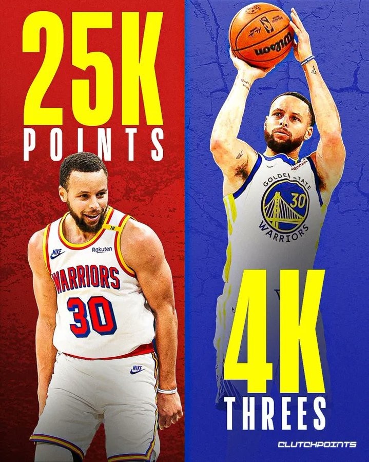 好事連連!庫(kù)里五天內(nèi)迎兩大里程碑:25000分+4000記三分球