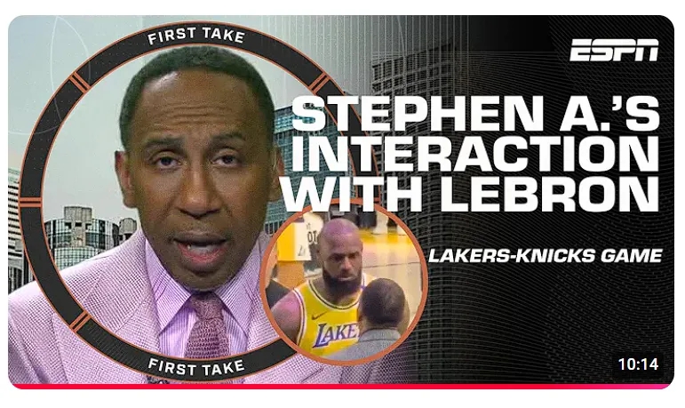 被國(guó)內(nèi)球迷稱為「美國(guó)楊毅」的史蒂芬·A·史密斯(Stephen A. Smith),不久前就經(jīng)歷了這樣的事情。他的做法是:現(xiàn)場(chǎng)略顯局促的默默承受,然后第二天上自己在ESPN的節(jié)目——《First Take》上開噴。