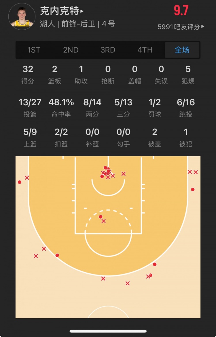 湖人17號(hào)秀 道爾頓-克內(nèi)克特 登場(chǎng)36.9分鐘