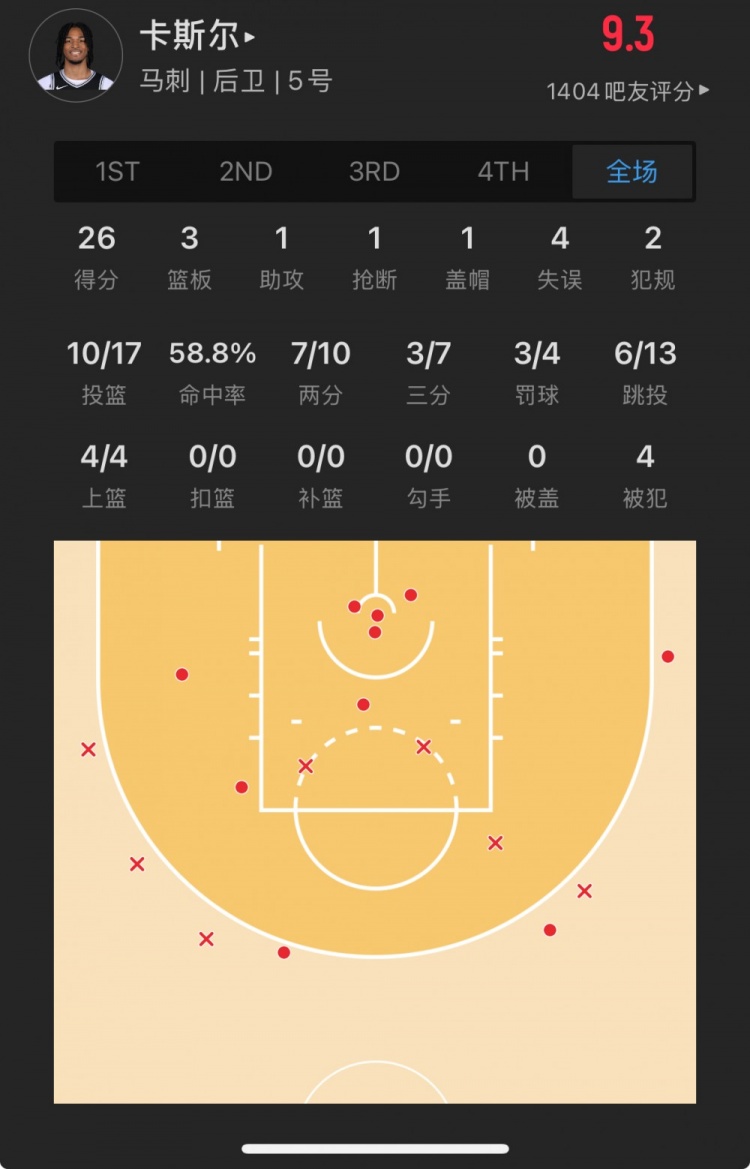 馬刺4號(hào)秀 斯蒂芬-卡斯?fàn)?登場(chǎng)29.0分鐘