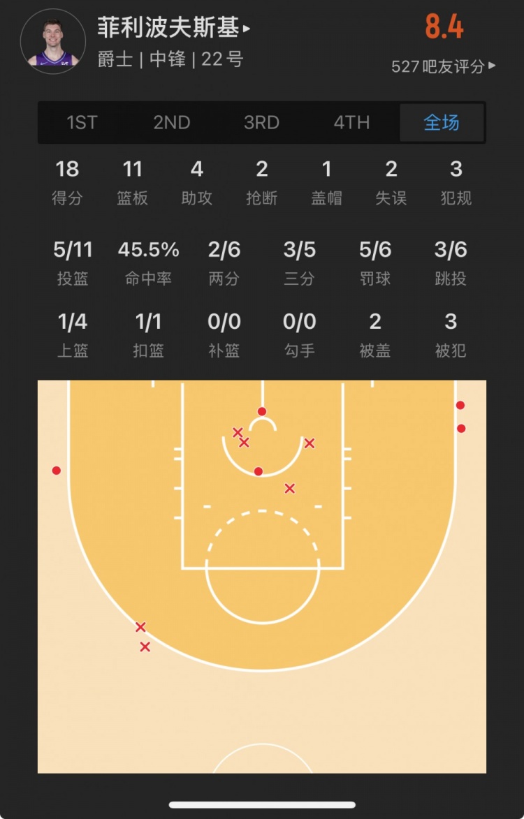 爵士32號(hào)秀 凱爾-菲利波夫斯基 登場(chǎng)33.0分鐘