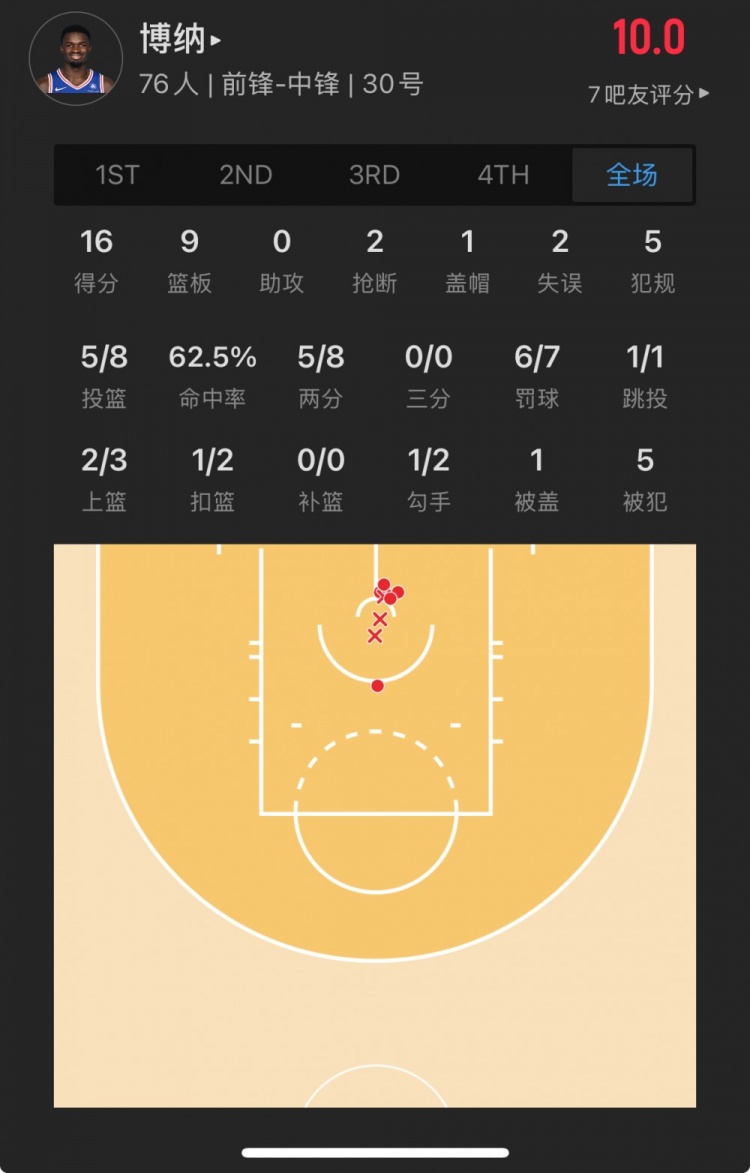 76人41號(hào)秀 阿德姆-博納 登場(chǎng)33.6分鐘