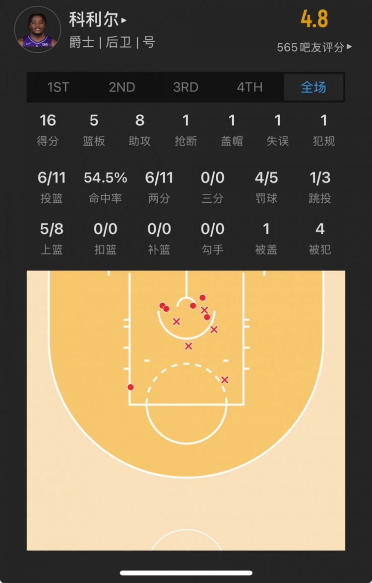 爵士29號(hào)秀 以賽亞-科利爾 登場(chǎng)36.1分鐘