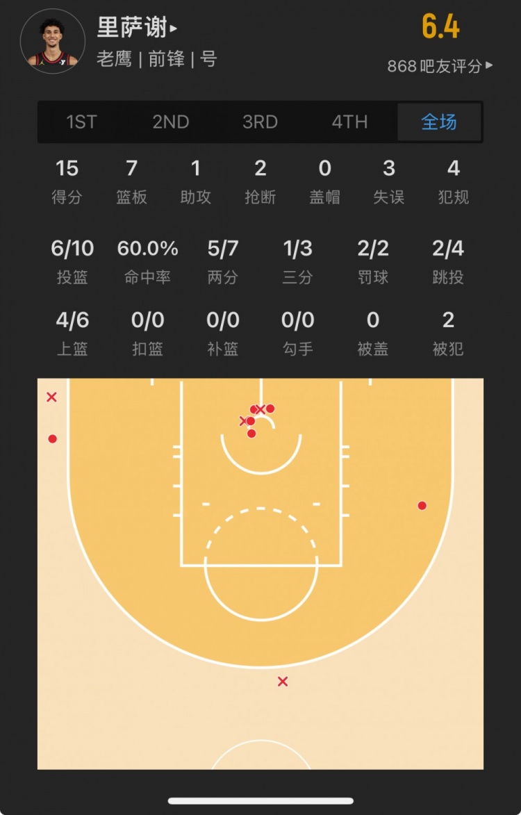 老鷹狀元秀 扎卡里-里薩謝 登場(chǎng)36.5分鐘