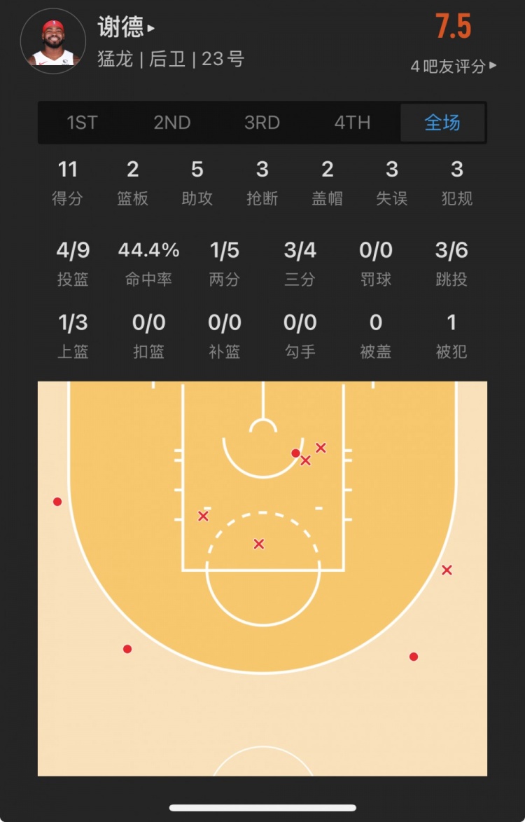 猛龍45號(hào)秀 賈馬爾-謝德 登場(chǎng)26.6分鐘