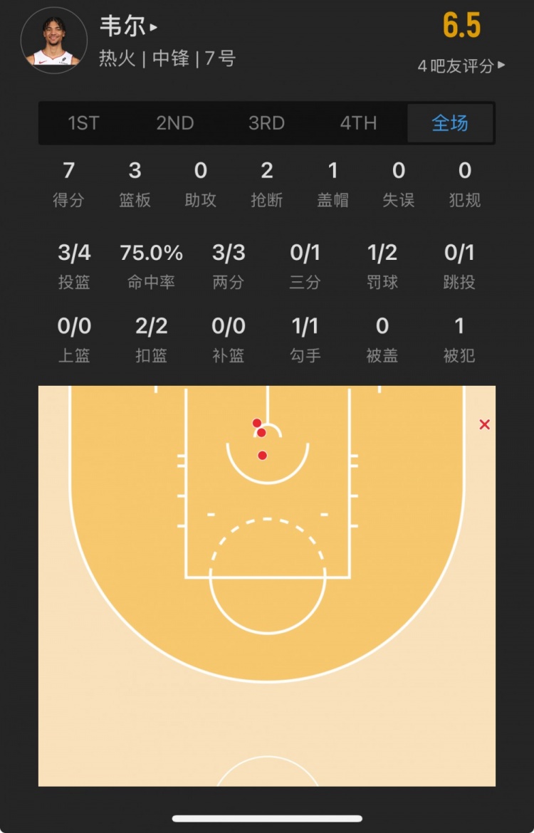 熱火15號(hào)秀 克雷爾-韋爾 登場(chǎng)15.4分鐘