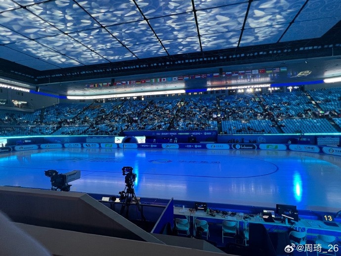 放松一下!周琦社媒曬觀戰(zhàn)短道速滑世錦賽的圖片