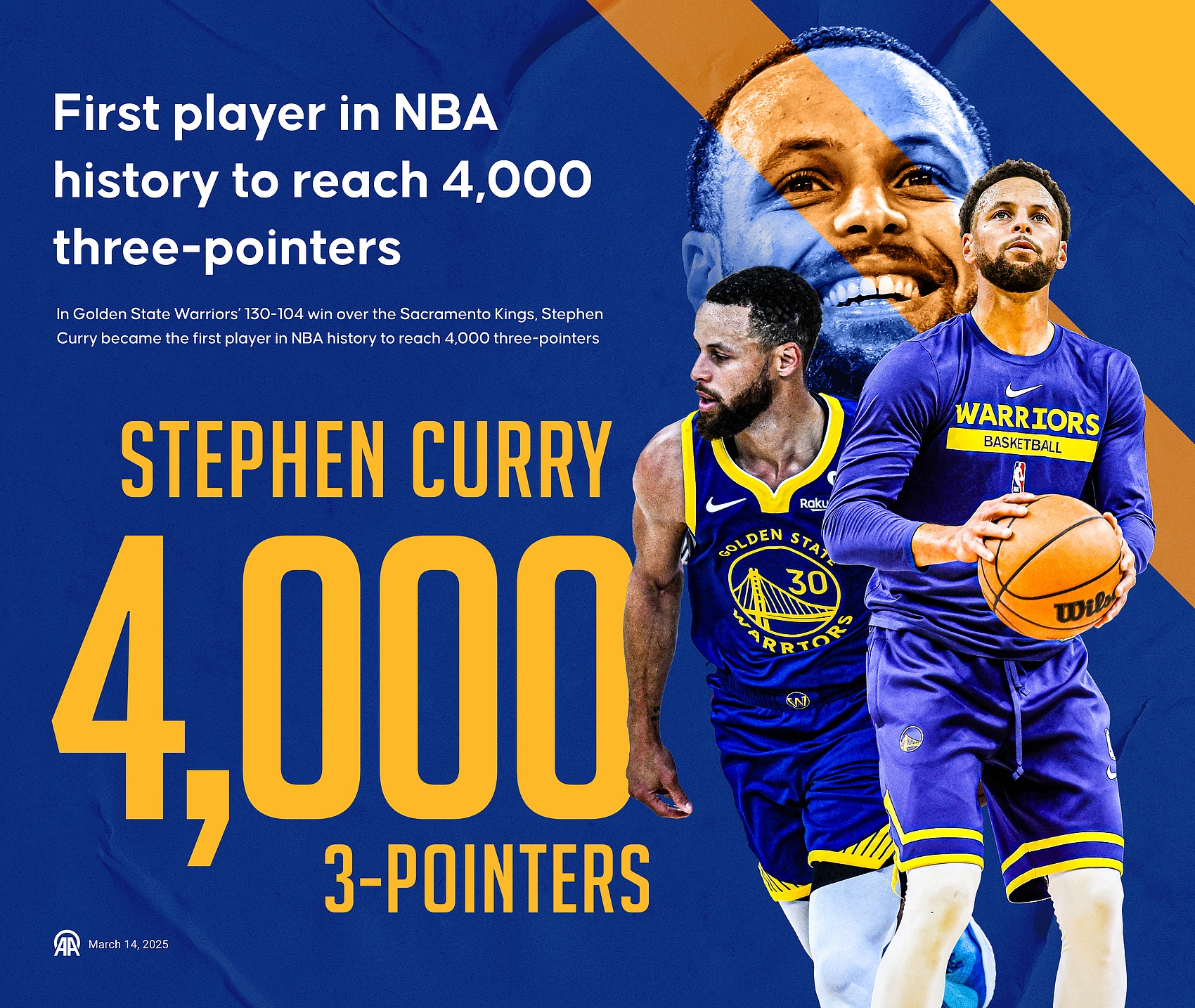 斯蒂芬-庫里剛剛創(chuàng)造了4000記三分球的紀錄。而自從庫里的金州勇士隊得到吉米-巴特勒以來,他們?nèi)〉昧?3勝1負的戰(zhàn)績,并沖到了西部第六的位置。