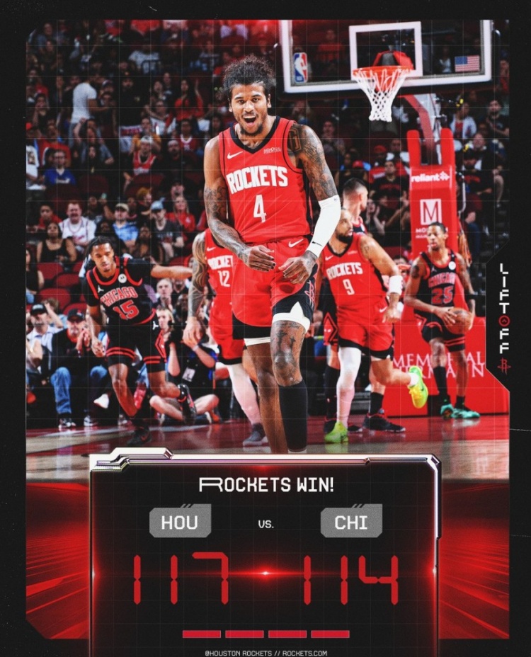 賽后,火箭官方發(fā)布贏球海報,杰倫-格林登上封面。