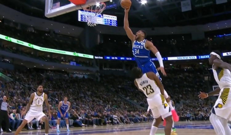 視覺效果炸裂!字母哥絲滑轉(zhuǎn)身單臂隔扣內(nèi)史密斯 可惜吹進(jìn)攻犯規(guī)