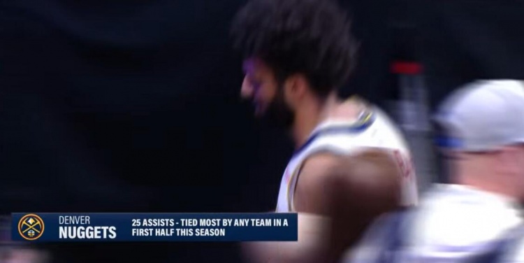上半場(chǎng),掘金全隊(duì)共有25次助攻,平了本賽季所有球隊(duì)半場(chǎng)助攻最多紀(jì)錄。