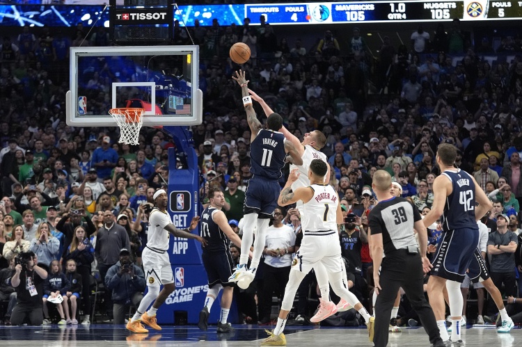 3月18日訊 一年前的今天,在獨(dú)行俠107-105險(xiǎn)勝掘金的比賽中,歐文在比賽最后時(shí)刻持球突破,在三分線內(nèi)一步的位置用左手拋投,皮球劃過上前補(bǔ)防的約基奇的指尖,球進(jìn)燈亮,完成絕殺。