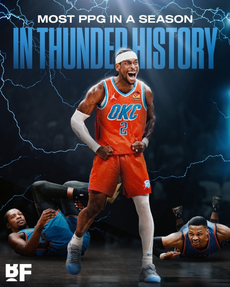 預定MVP?SGA場均得分達到33分 超越MVP賽季的KD威少排隊史第一