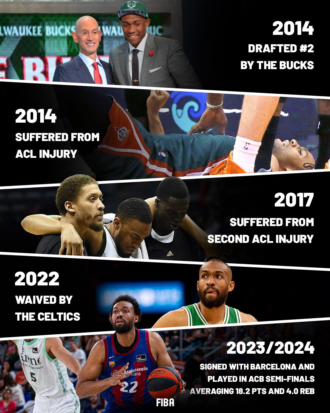 賈巴里-帕克2014年參加選秀被雄鹿以榜眼簽選中,2014年新秀賽季左膝前十字韌帶斷裂,賽季報銷。