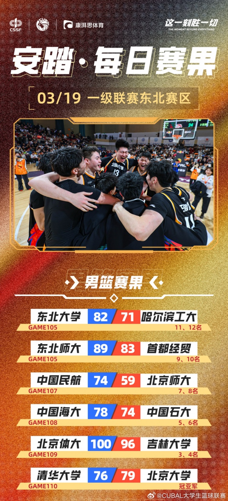 CUBAL每日賽果:北大時隔6年再次奪得東北王!北體獲東北賽區(qū)季軍
