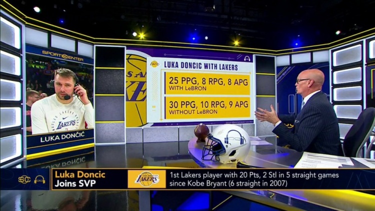 加盟湖人后 當詹姆斯出場時東契奇場均25+8+8 無詹場均30+10+9