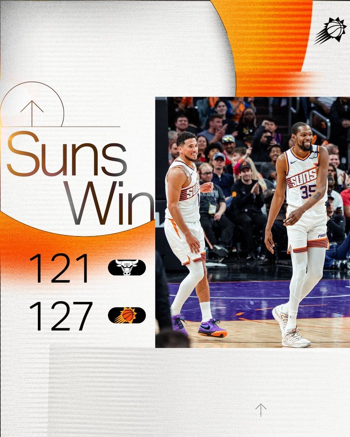 賽后,太陽(yáng)官方曬出本場(chǎng)贏球海報(bào),本場(chǎng)發(fā)揮出色的核心杜蘭特和布克登上封面。