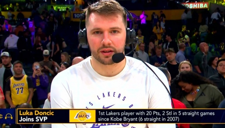 東契奇連續(xù)5場(chǎng)至少20分2斷 湖人隊(duì)史自2007年的科比后首人