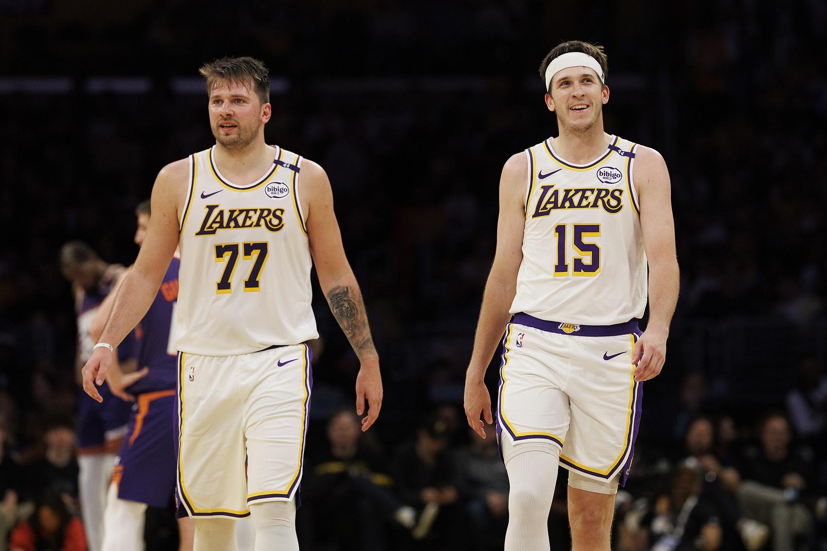 “他們對(duì)奧斯汀-里夫斯也做了同樣的事。所以他們想要持球攻擊的兩個(gè)人是盧卡和奧斯汀-里夫斯。杰倫-布朗說(shuō):‘哦,輪到我了。你上半場(chǎng)表現(xiàn)不錯(cuò),對(duì)吧?現(xiàn)在輪到我了,現(xiàn)在輪到我了。’這就是他們擊敗湖人的方式。那么在季后賽的防守端會(huì)發(fā)生什么呢?”
