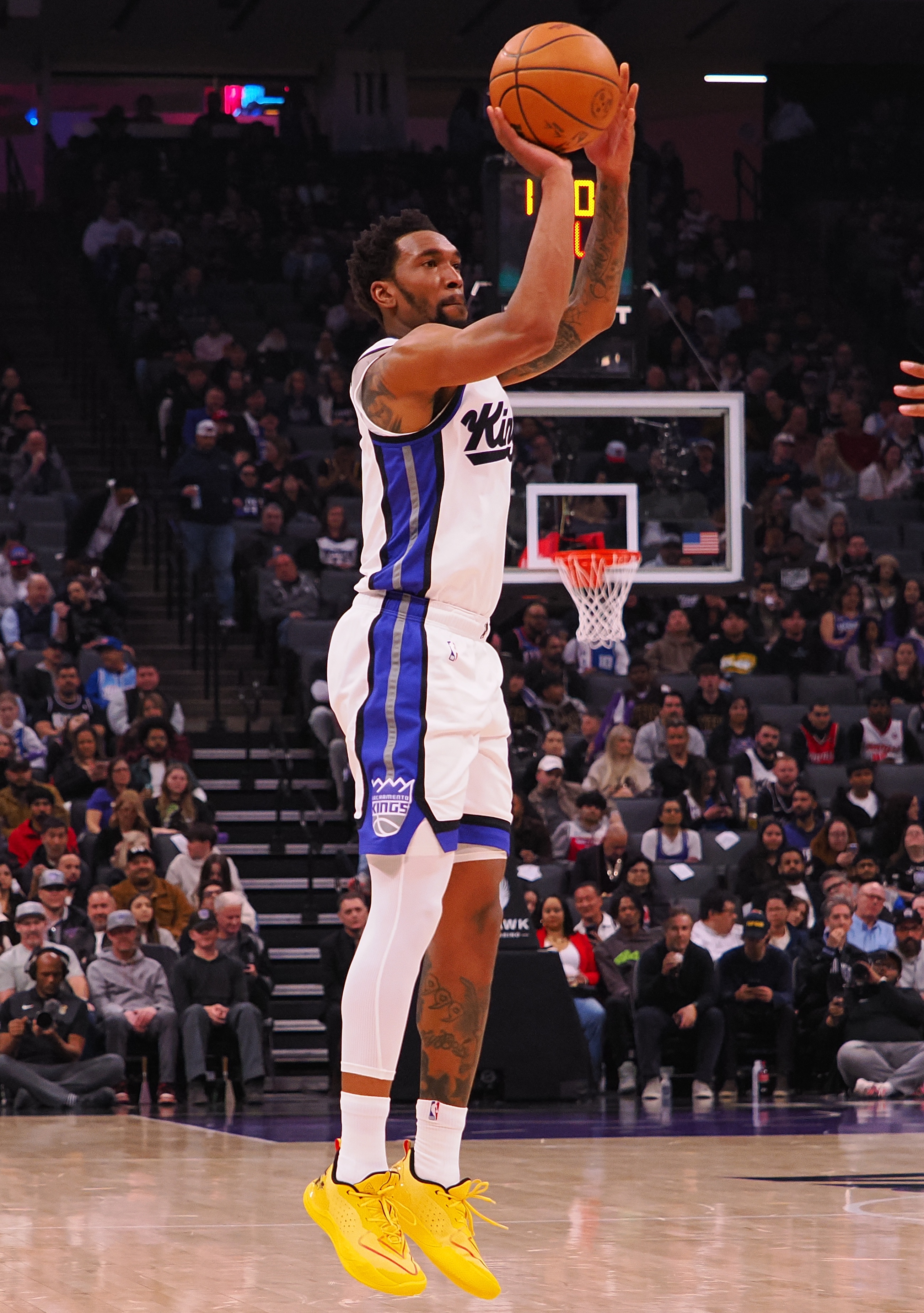 國(guó)王首節(jié)比賽外線(xiàn)火力全開(kāi),全隊(duì)命中11個(gè)三分,17投11中,命中率高達(dá)64.7%,其中蒙克命中5記三分,萊爾斯4中4。