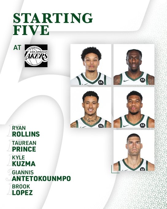 客場(chǎng)挑戰(zhàn)湖人!雄鹿今日首發(fā):字母哥領(lǐng)銜 表哥缺陣 庫茲馬戰(zhàn)舊主