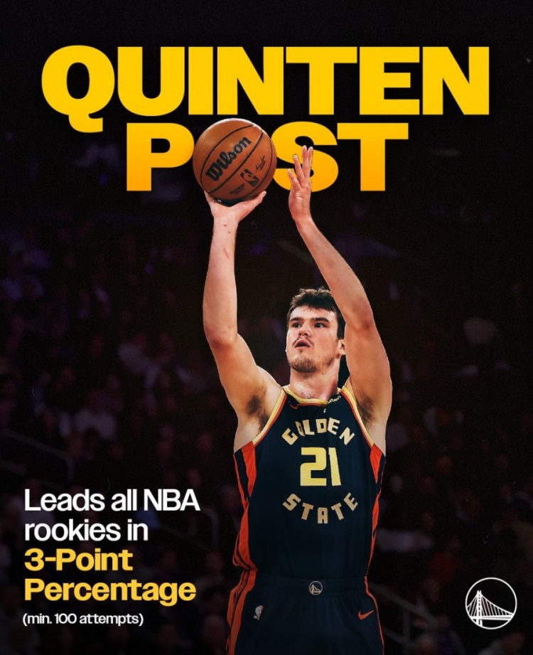 據(jù)統(tǒng)計(jì),波斯特本賽季的三分命中率排在本屆新秀(至少出手100次以上)第一名。