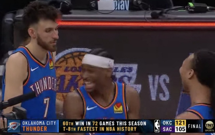 3月26日訊 NBA常規(guī)賽,雷霆賽季3-0橫掃國王,戰(zhàn)績來到60勝12負(fù)。