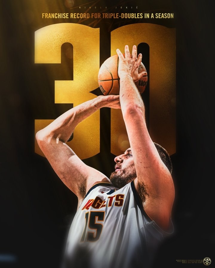打破自己保持的隊(duì)史紀(jì)錄!掘金官方曬海報(bào):約基奇單季30次三雙!