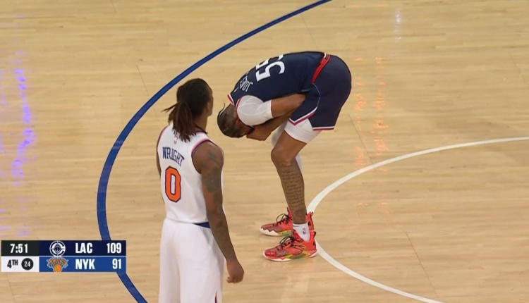 阿隆-戈登眉角流血&有很明顯的傷口 目前3犯在場(chǎng)下休息