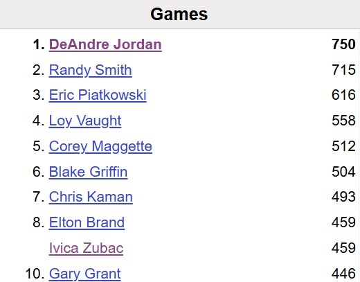 據(jù)統(tǒng)計(jì),這是祖巴茨代表快船出戰(zhàn)的第460場比賽,超越埃爾德-布蘭德,上升至隊(duì)史第八位。
