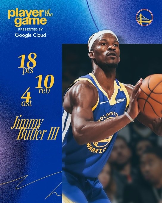 賽后勇士官方發(fā)布數(shù)據(jù)海報(bào),將巴特勒評(píng)為本場(chǎng)最佳球員。