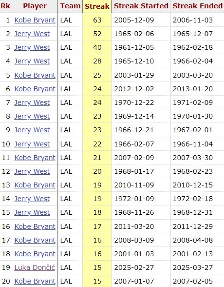 目前,東契奇已經(jīng)連續(xù)15場比賽20+,為湖人隊(duì)史第3位做到的后衛(wèi)球員,此前兩位是科比和杰里-韋斯特。