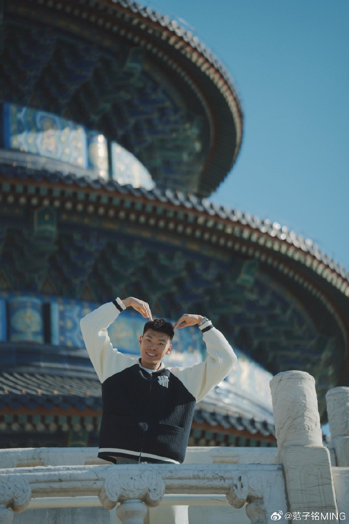 2月25日訊 今日,北京男籃球員范子銘更新社媒,曬出了游天壇的照片。