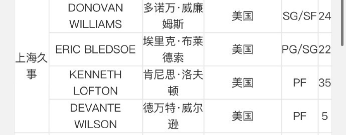 其中,上海男籃新援多諾萬(wàn)-威廉姆斯完成注冊(cè)。