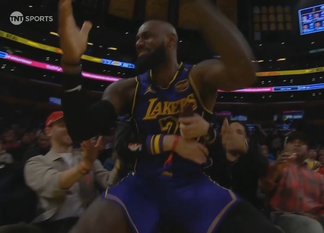 詹姆斯快攻上籃飛出場(chǎng)外摔到場(chǎng)外觀眾席 裁判未響哨&老詹十分不滿(mǎn)