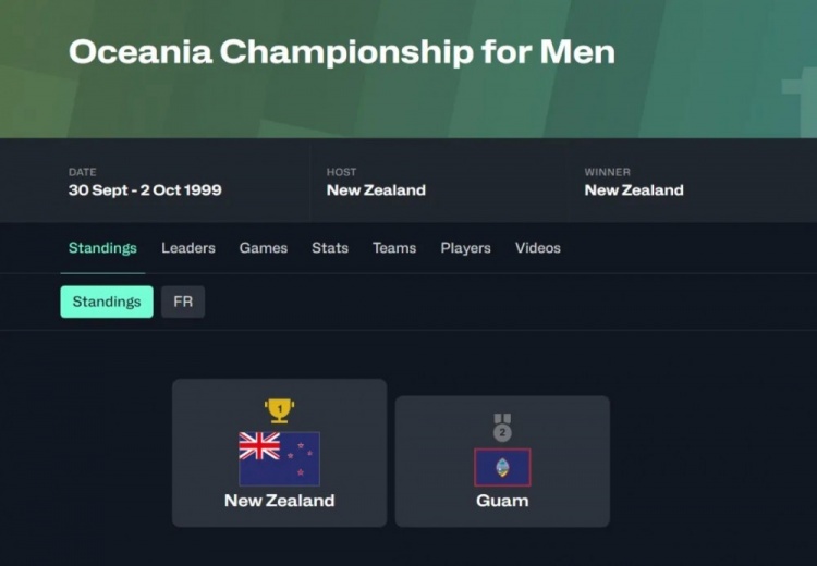 1999年,關(guān)島唯一一次參加大洋洲籃球錦標(biāo)賽,這個(gè)比賽是奧運(yùn)會(huì)大洋洲參賽名額的預(yù)算賽,一般都是澳新二人轉(zhuǎn),但2000年澳大利亞是奧運(yùn)會(huì)東道主直接晉級(jí),關(guān)島被迫參賽,取得了第二名的歷史最好成績