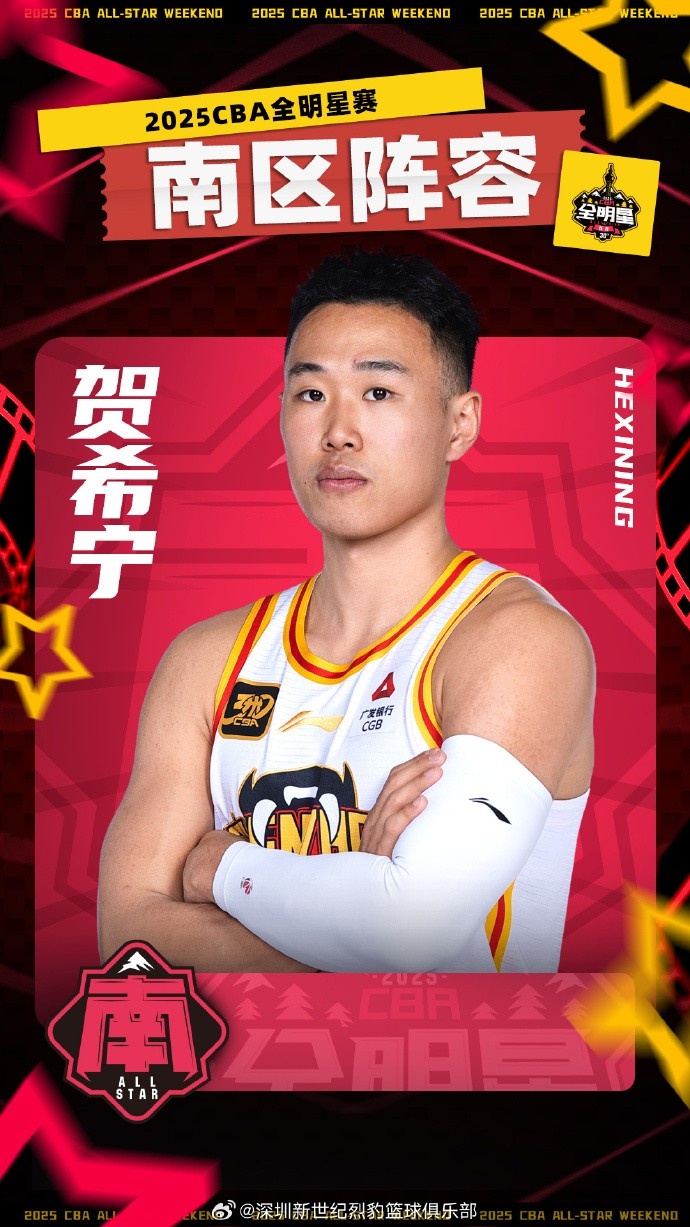 2月26日訊 深圳男籃球員賀希寧今天更新社媒,談到了入選全明星的感受。