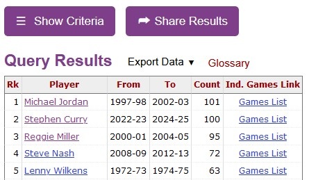 NBA歷史35歲之后砍下20+最多的后衛(wèi):喬丹&庫里101次并列第一