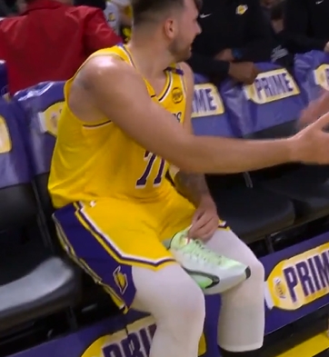 東契奇鞋被踩掉&回頭看了一眼&徑直走向前場 湖人喊暫停為其撿鞋