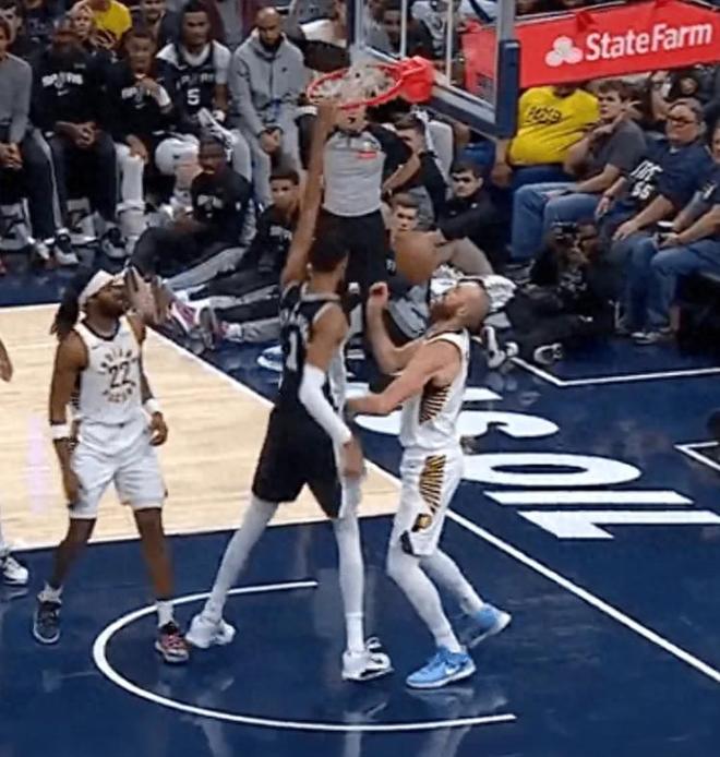 在今天的季前賽里,文班亞馬徹底統(tǒng)治了賽場。他輕描淡寫的砍下了27分11籃板4助攻3搶斷1蓋帽的華麗數(shù)據(jù),攻防兩端都是無可挑剔的存在。值得一提的是,賽場上文班亞馬還上演了站扣胡夫的戲碼。要知道胡夫的身高也達(dá)到了2米16,是個(gè)龐然大物,但文班亞馬卻可以輕松隔扣,不得不說這個(gè)身高臂展太夸張了。