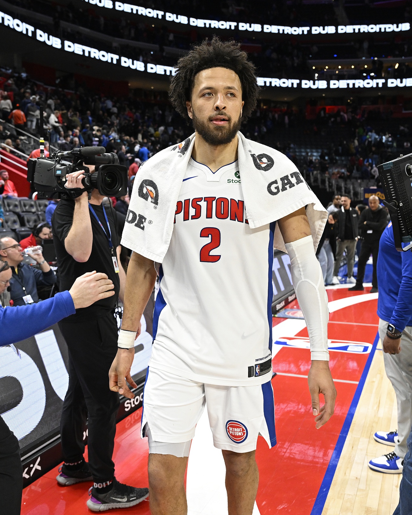 那天晚上晚些時(shí)候,在活塞的更衣室里,康寧漢姆走到自己的更衣柜前,把一條毛巾搭在肩上。他看起來并不沮喪。球員們當(dāng)然會(huì)失望,但氣氛仍然輕松。隊(duì)友們在離開前互相擊掌。