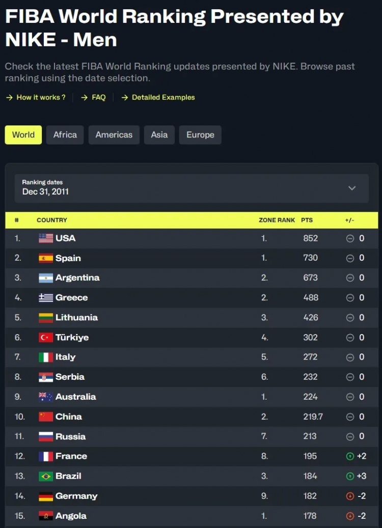 相對(duì)而言,國(guó)際籃聯(lián)FIBA對(duì)于世界排名的計(jì)算就不太被關(guān)注了,不僅在于它的算法更為繁瑣和復(fù)雜,更在于一直以來都頗有幾分神秘色彩。