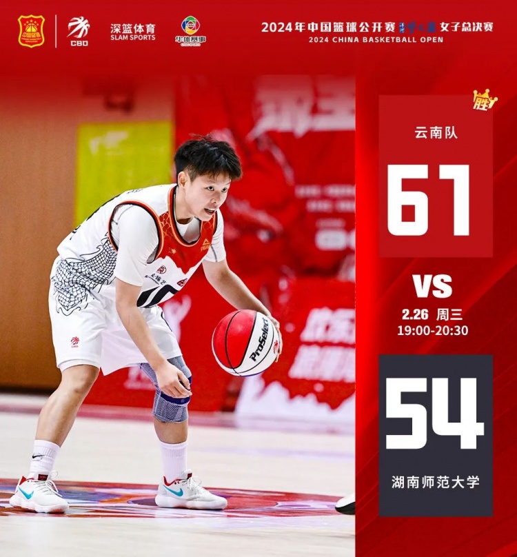 云南隊(duì)和湖南師范大學(xué)在本輪相遇,實(shí)力相當(dāng)?shù)膬芍蜿?duì)打得相對(duì)膠著。上半場(chǎng),10平后,湖南師范大學(xué)30號(hào)趙詩雨兩分命中,隨后6號(hào)沈思榆外線再貢獻(xiàn)一個(gè)三分球,15-10湖南師范大學(xué)超出。云南隊(duì)依靠6號(hào)羅菲和14號(hào)娜漢的進(jìn)攻緊咬比分。半場(chǎng)結(jié)束云南隊(duì)落后湖南師范大學(xué)1分。下半場(chǎng),兩隊(duì)依舊難解難分。在云南隊(duì)幾次外線得分實(shí)現(xiàn)反超,14號(hào)娜漢外投內(nèi)突,連續(xù)得分,云南隊(duì)士氣大漲,最終云南隊(duì)61-54戰(zhàn)勝湖南師范大學(xué)。