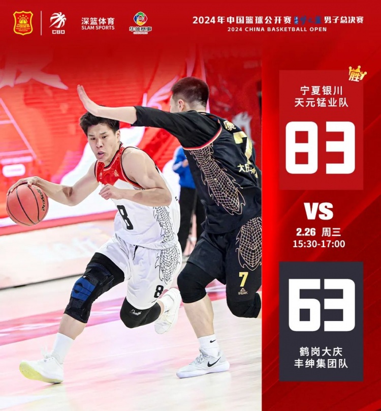 上半場(chǎng),寧夏天元錳業(yè)一波7-0開局,打停大慶豐紳集團(tuán)。暫?;貋恚瑢幭奶煸i業(yè)在搶到后場(chǎng)籃板后,積極組織快攻,11-1寧夏天元錳業(yè)領(lǐng)先。隨后大慶豐紳集團(tuán)增強(qiáng)防守,同時(shí)手感開始回暖,但寧夏天元錳業(yè)在前后場(chǎng)籃板和進(jìn)攻上發(fā)揮的更加出色。半場(chǎng)結(jié)束,寧夏天元錳業(yè)44-24大慶豐紳集團(tuán)。下半場(chǎng),寧夏天元錳業(yè)繼續(xù)保持進(jìn)攻勢(shì)頭,最終天元錳業(yè)83-63大慶豐紳集團(tuán)。