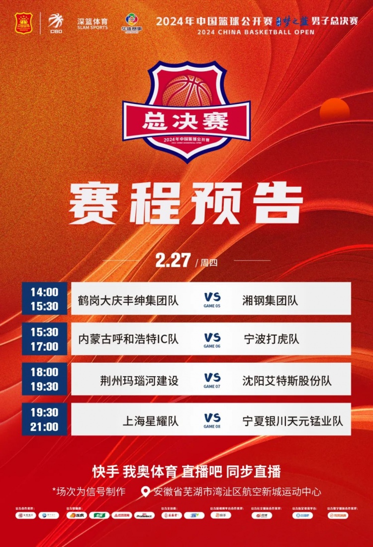 2月26日,2024年中國籃球公開賽洋河夢(mèng)之藍(lán)男子總決賽在安徽省蕪湖市灣沚區(qū)航空新城運(yùn)動(dòng)中心打響。在首輪四場(chǎng)比賽中,艾特斯股份、寧夏天元錳業(yè)、寧波打虎、湘鋼集團(tuán)取得勝利。