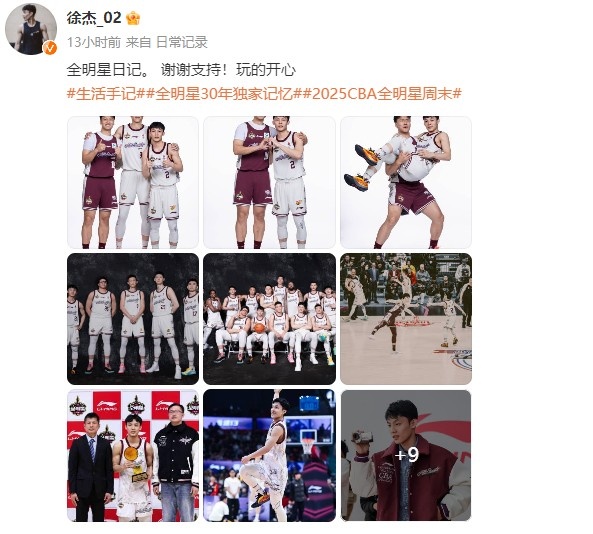 徐杰曬照回顧長(zhǎng)春全明星之旅:全明星日記 謝謝支持 玩得開(kāi)心