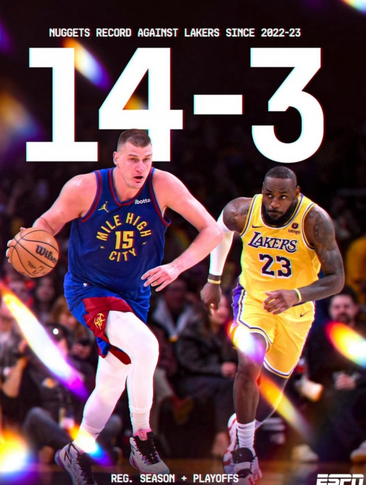 今日刀兵相見!自2022-23賽季以來 掘金對陣湖人合計(jì)取得14勝3負(fù)